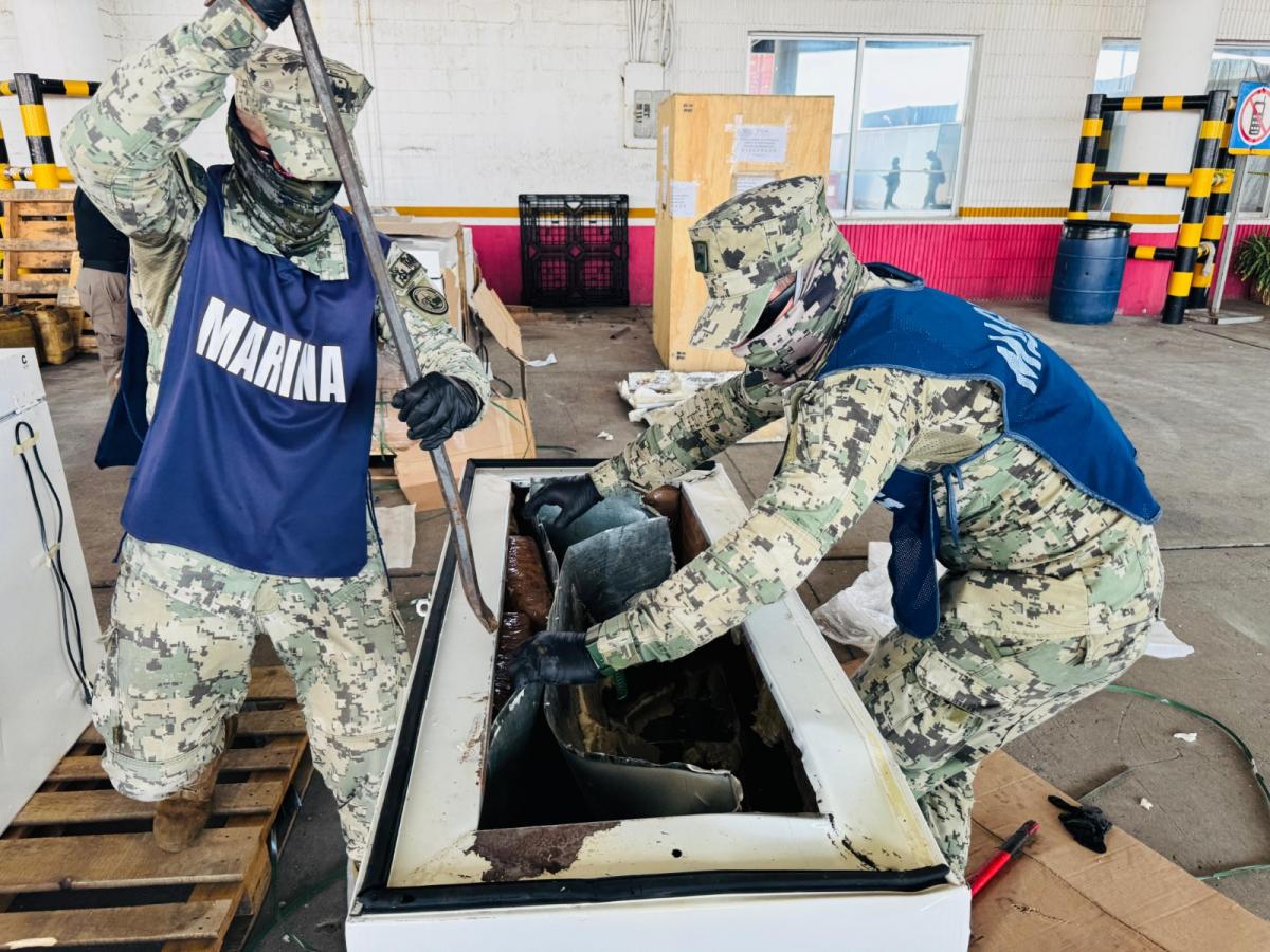 Después, personal de la Secretaría de Marina y de la Aduana se encargaron de desarmar el congelador para sacar los paquetes de droga. Lo incautado fue puesto a disposición de las autoridades para la integración de la carpeta de investigación correspondiente.
