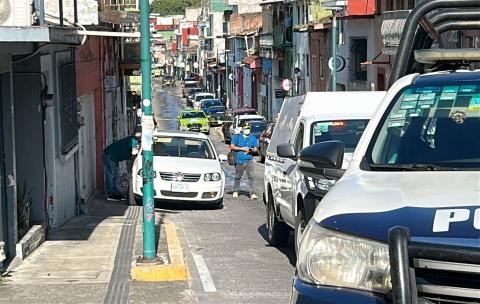 Elementos de la Policía Estatal acordonaron la zona para facilitar el trabajo de peritos y prevenir riesgos a los transeúntes. La vialidad fue parcialmente cerrada, generando un ligero congestionamiento vehicular en la zona céntrica.
