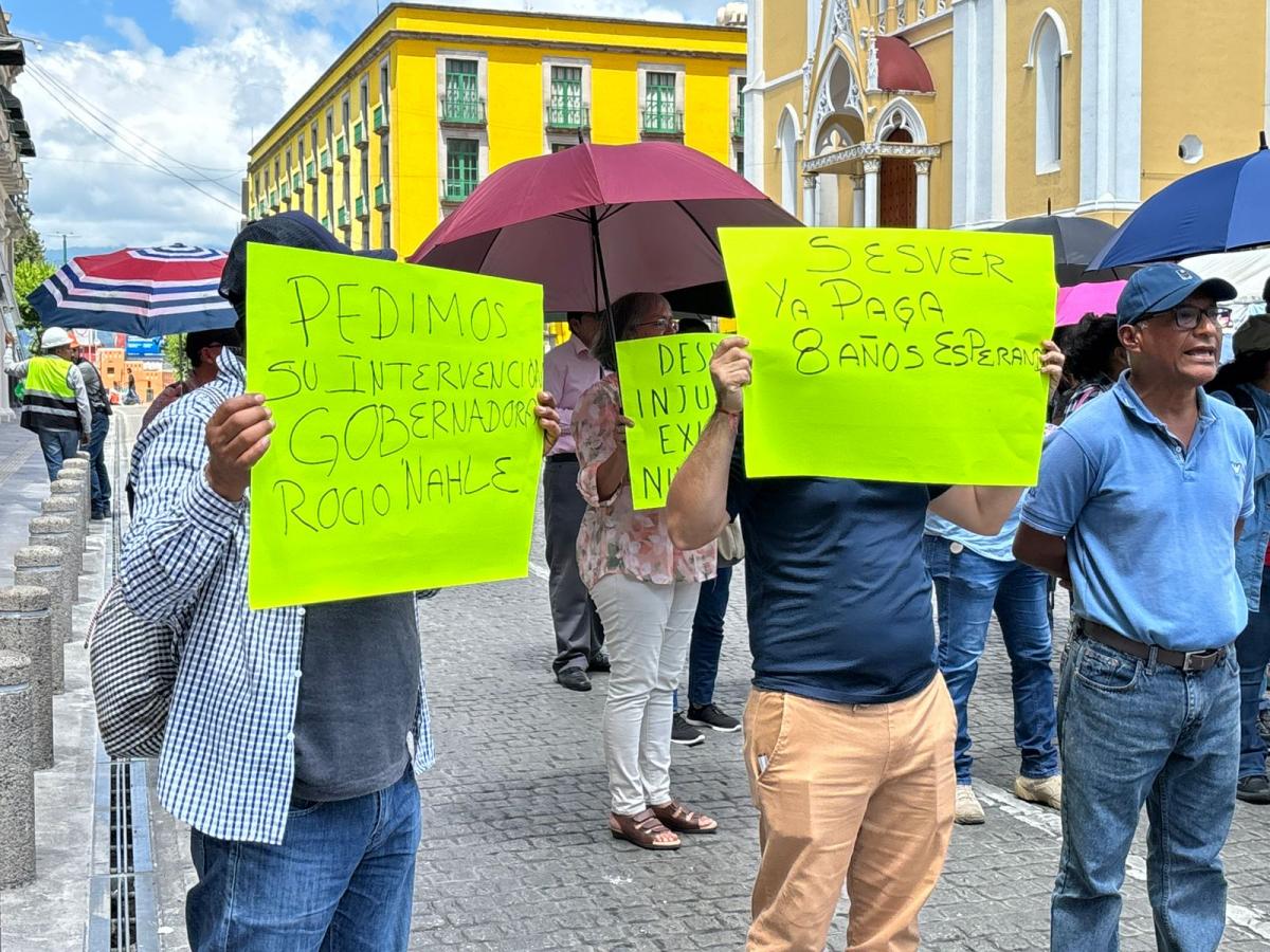 Como parte de la protesta, bloquearon de manera intermitente la calle Juan de la Luz Enríquez. Denunciaron que el gobierno estatal mantiene pendiente el pago de más de 58 millones de pesos a 90 exempleados que aún no han recibido su liquidación.