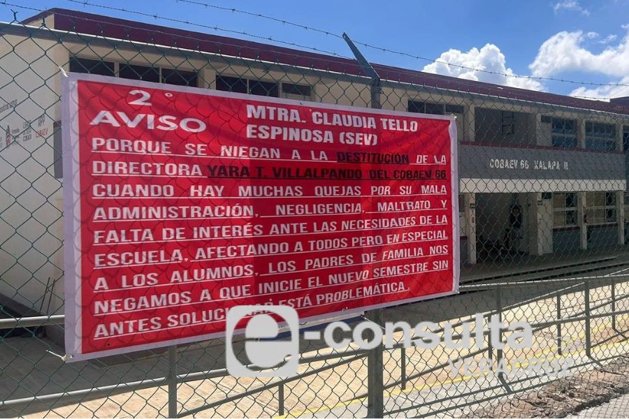 Xalapa, Ver.- Madres y padres de familia del Colegio de Bachilleres del Estado de Veracruz (Cobaev) plantel 66 protestaron en las instalaciones, ubicadas en el fraccionamiento Lomas de Santa Fe, para exigir la destitución de la directora Teresa Villalpando Berumen, a quien acusan de fomentar un ambiente de hostigamiento y maltrato hacia los alumnos.