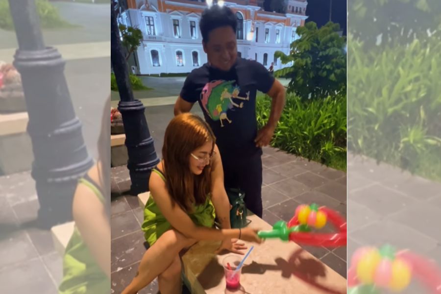 Después, en el video se observa como el hombre le entrega a la joven una figura de corazón hecha con globos, que en el centro tiene una flor, y le dice: “Son 500, ah no es cierto, es una cooperación de 100 pesitos es mi trabajo y se lo gano”.