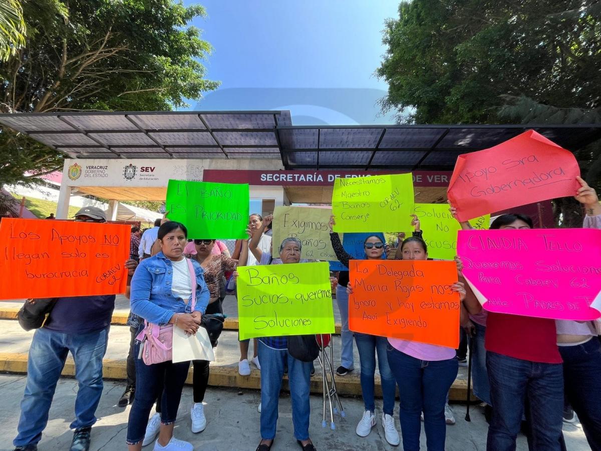 Plantón en la SEV: padres de Cobaev 62 exigen baños e intendente
