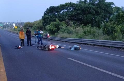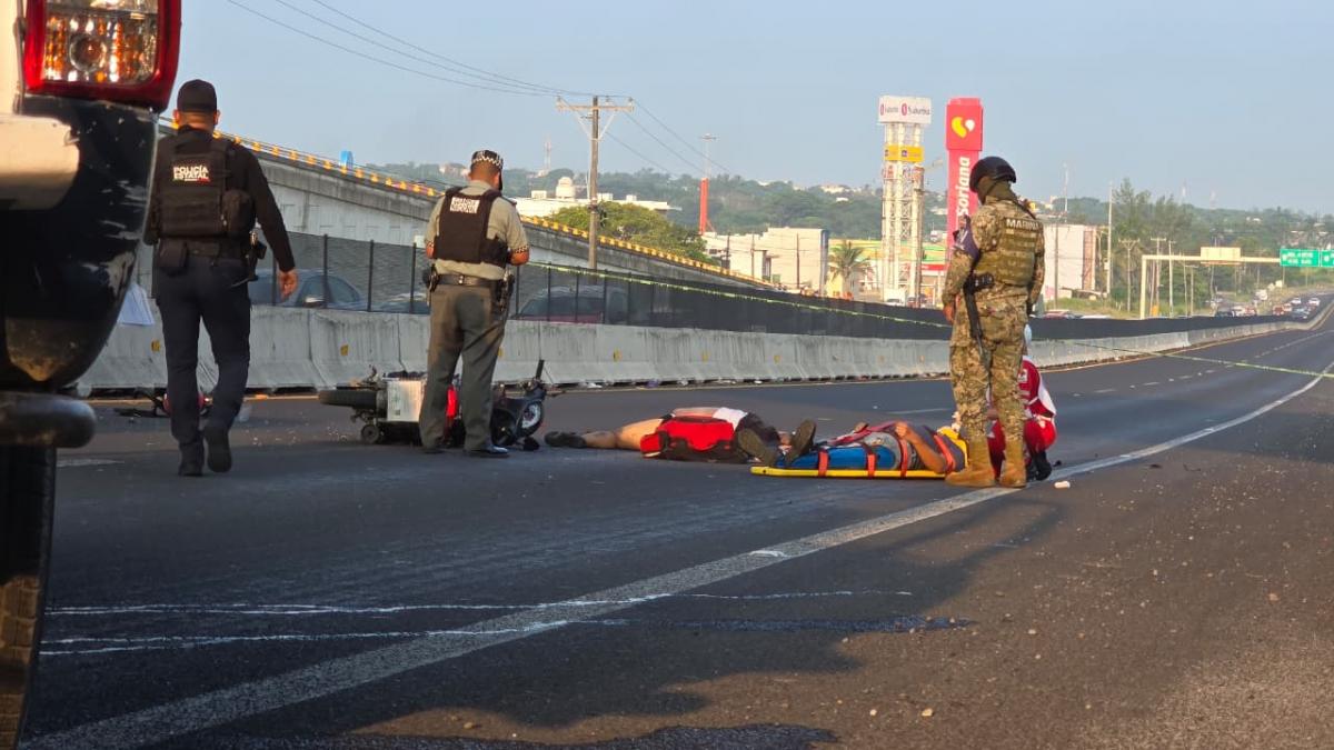 El accidente se registró en el carril con dirección de sur a norte, a la altura del puente que conecta hacia los fraccionamientos de Río Medio. De acuerdo con testigos, la motocicleta derrapó varios metros hasta impactar contra el pavimento.