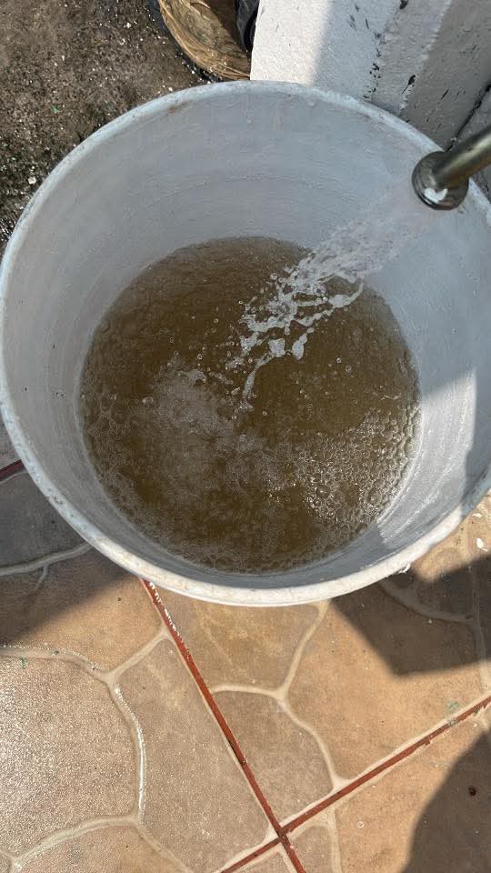 “Tiene meses que el agua sale muy contaminada, tengo que ponerle un trapo para que se queden los residuos ahí pero aun así le pasan, sale como arenilla café y también nos dio dermatitis”, escribió Angelica Gutiérrez en redes sociales.