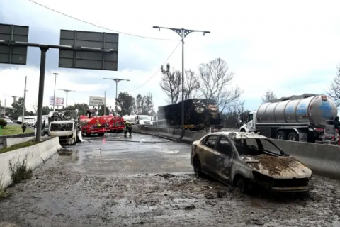 La titular de la Secretaría de Gestión Integral de Riesgos y Protección Civil, Myriam Urzúa, confirmó que la volcadura de la unidad provocó la detonación inicial y el fuego ya estaba sofocado al momento de su declaración.