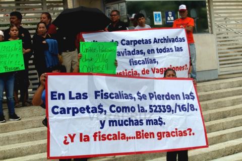 Durante la manifestación, los inconformes portaban pancartas con leyendas como “Fiscalías ineptas y corruptas” y “Aquí se pierden las carpetas”, en protesta por lo que consideran negligencia institucional. Sánchez explicó que la falta de seguimiento ha dejado en el limbo jurídico a más de 52 personas afectadas, quienes enfrentan incertidumbre y riesgo ante la impunidad.