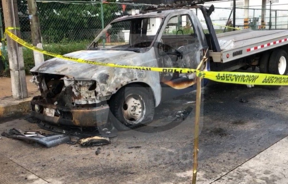 Incendian grúa con bombas molotov en Coatzacoalcos