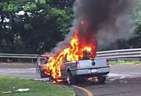 En cuestión de minutos, la camioneta se incendió, las llamas se alzaron y las imágenes sobre el siniestro comenzaron a circular a través de las redes sociales. Una presunta falla mecánica provocó el fuego.