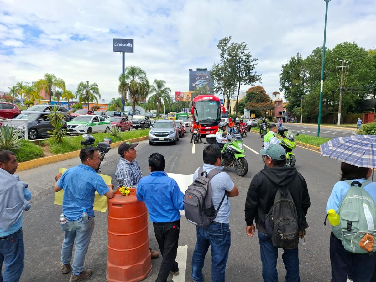 La manifestación comenzó al mediodía la tarde del 2 de octubre y provocó un fuerte congestionamiento vehicular en ambos sentidos de la vialidad, en la zona sur de la capital veracruzana.