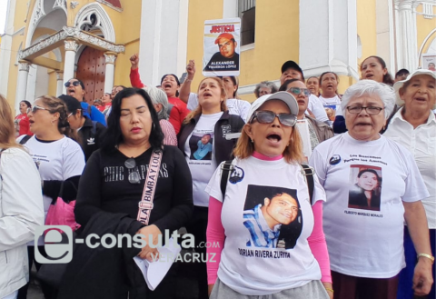 Para presionar a las autoridades, los familiares de desaparecidos se manifestaron en la plaza Sebastián Lerdo de Tejada, frente al palacio de gobierno del estado de Veracruz.