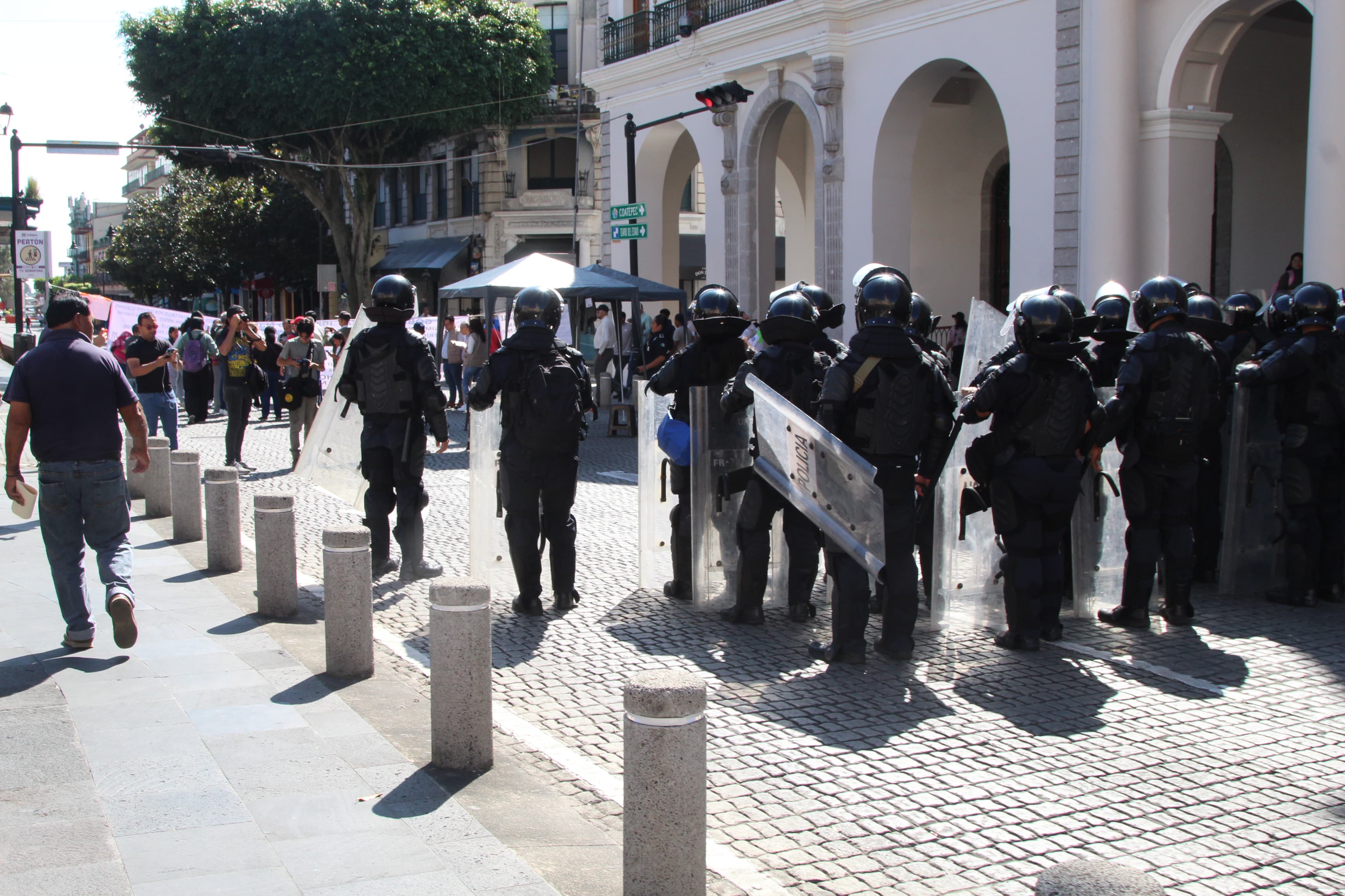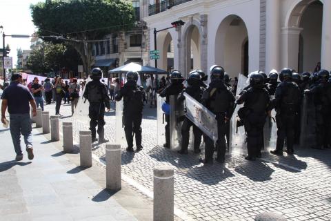 Policías antimotines desalojan a jubilados del centro de Xalapa