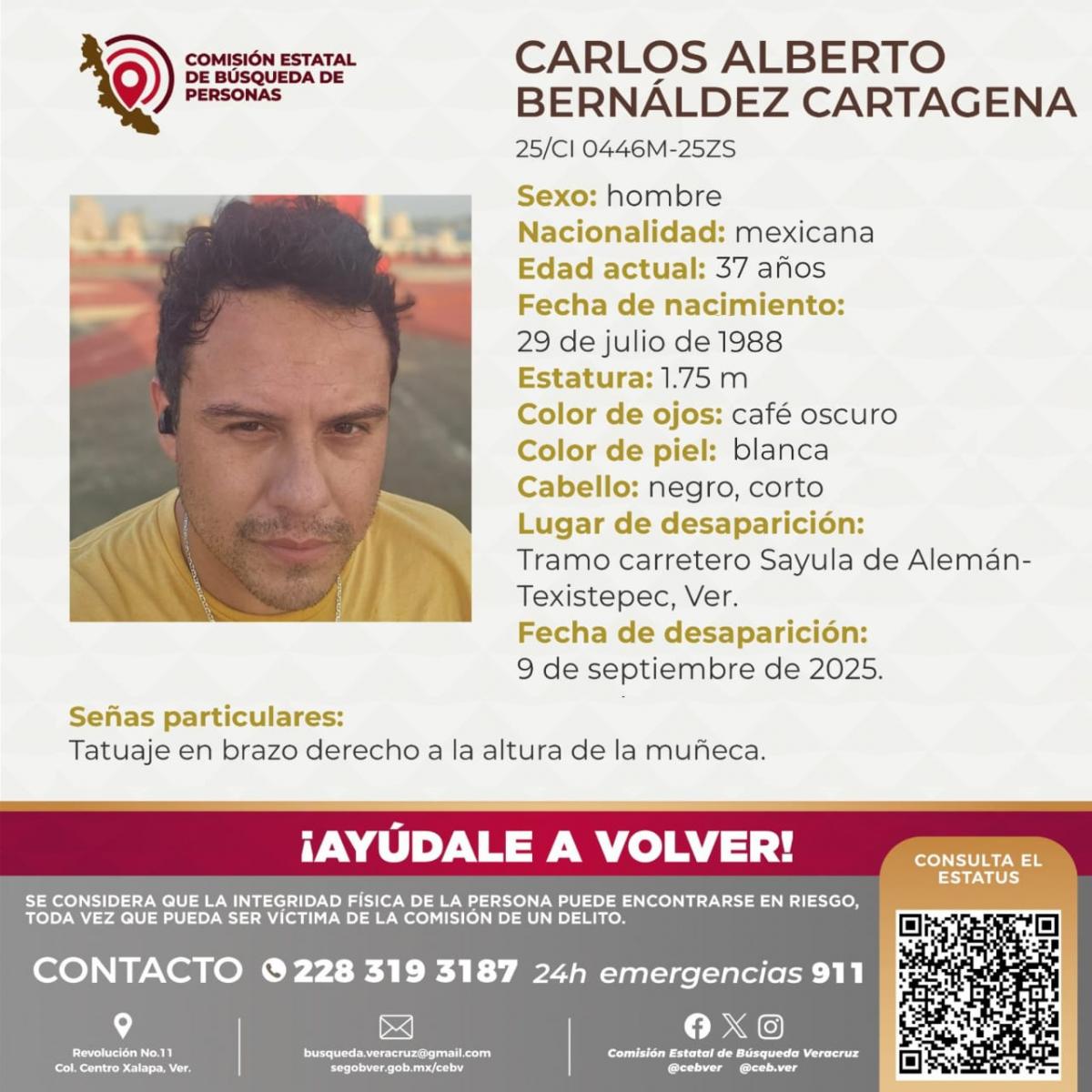 Según las ficha de búsqueda, fueron vistos por última vez en el tramo carretero Sayula Alemán-Texistepec. Hasta este sábado 4 de octubre, la CEBV mantiene activa su búsqueda.