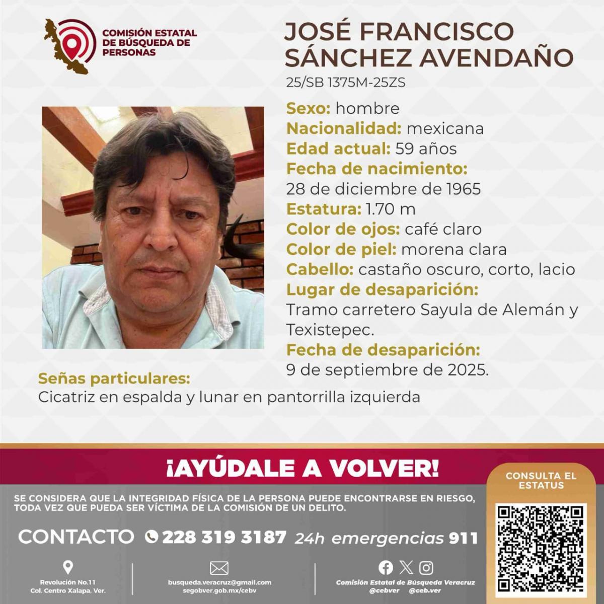 El adulto mayor desapareció en el municipio de Jalcomulco, el pasado domingo 21 de septiembre. Por cinco días, sus familiares lo buscaron. Su ficha de búsqueda fue actualizada con la leyenda "Localizada".