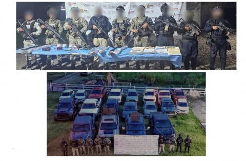 Aseguran 19 vehículos blindados y armamento en Tierra Blanca