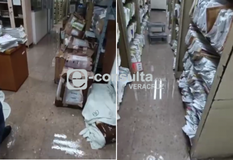 El área de comunicación social del IMSS en Veracruz aceptó que derivado de las lluvias presentadas por la Tormenta Tropical Jerry, se presentaron encharcamientos y filtraciones en el área de archivo.