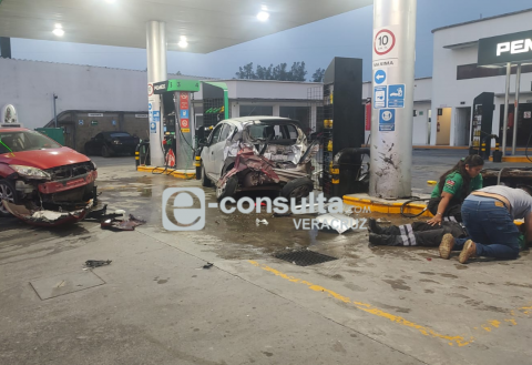 Adrian N salió proyectado de su automóvil, mientras que un empleado de la gasolinera quedó prensado entre los fierros de los vehículos siniestrados.