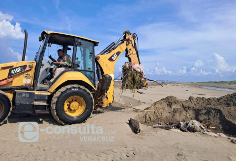 Coatzacoalcos, Ver.— Un total de 35 animales muertos fueron enterrados en la playa de Coatzacoalcos. Los cadáveres recalaron a la costa en días pasados, tras las lluvias registradas en el norte del estado de Veracruz.