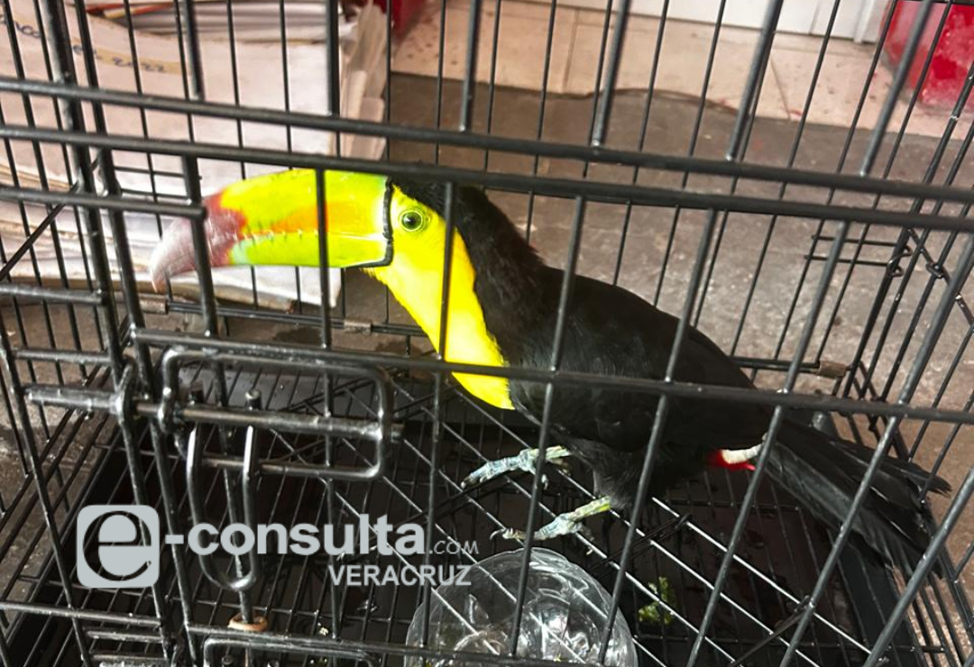 Veracruz, Ver.— Un tucán con las alas cortadas fue encontrado en una casa de la colonia Malibrán Las Brujas, en el municipio de Veracruz. El hallazgo se dio por medio de un reporte a bomberos locales, antes de ser devorado.