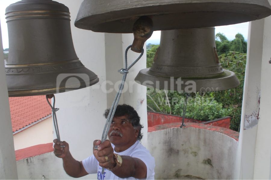 “Las campanas aquí se repican desde las 12:00 del día hasta las 15:00 horas del domingo sin parar. El pueblo aquí ya sabe de la tradición y nos acompañan. Se repican las campanas, llega otra persona y así se remplazan, por eso las campanas siempre están tocando”.