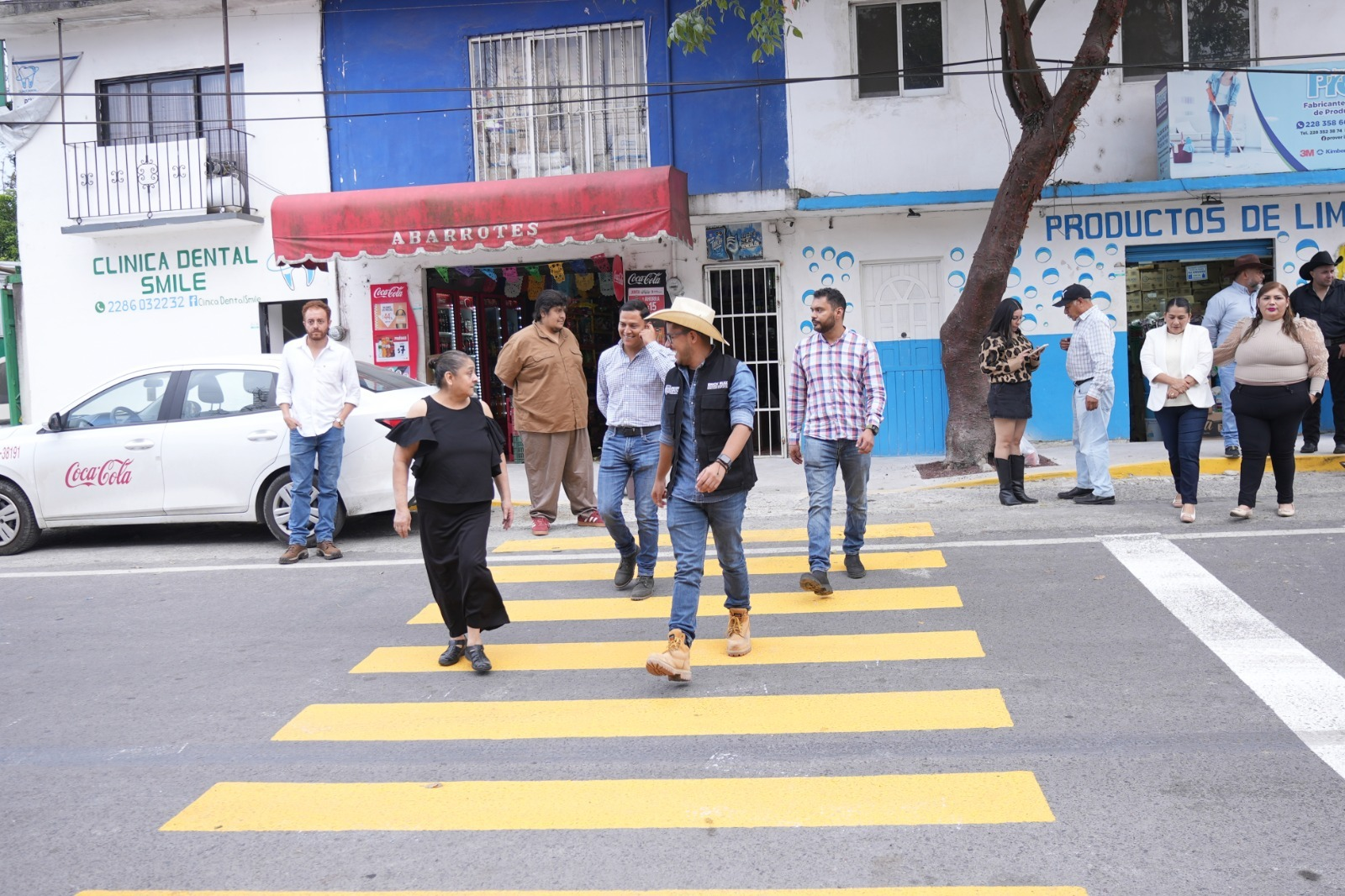 “La ciudad creció con una idea errónea de priorizar los vehículos particulares. Son errores de pasado y en Emiliano Zapata no lo hacemos así, aquí estamos poniendo primero al peatón”, declaró el alcalde durante la inauguración de la obra en la localidad, acompañado de ediles, autoridades locales y pobladores.