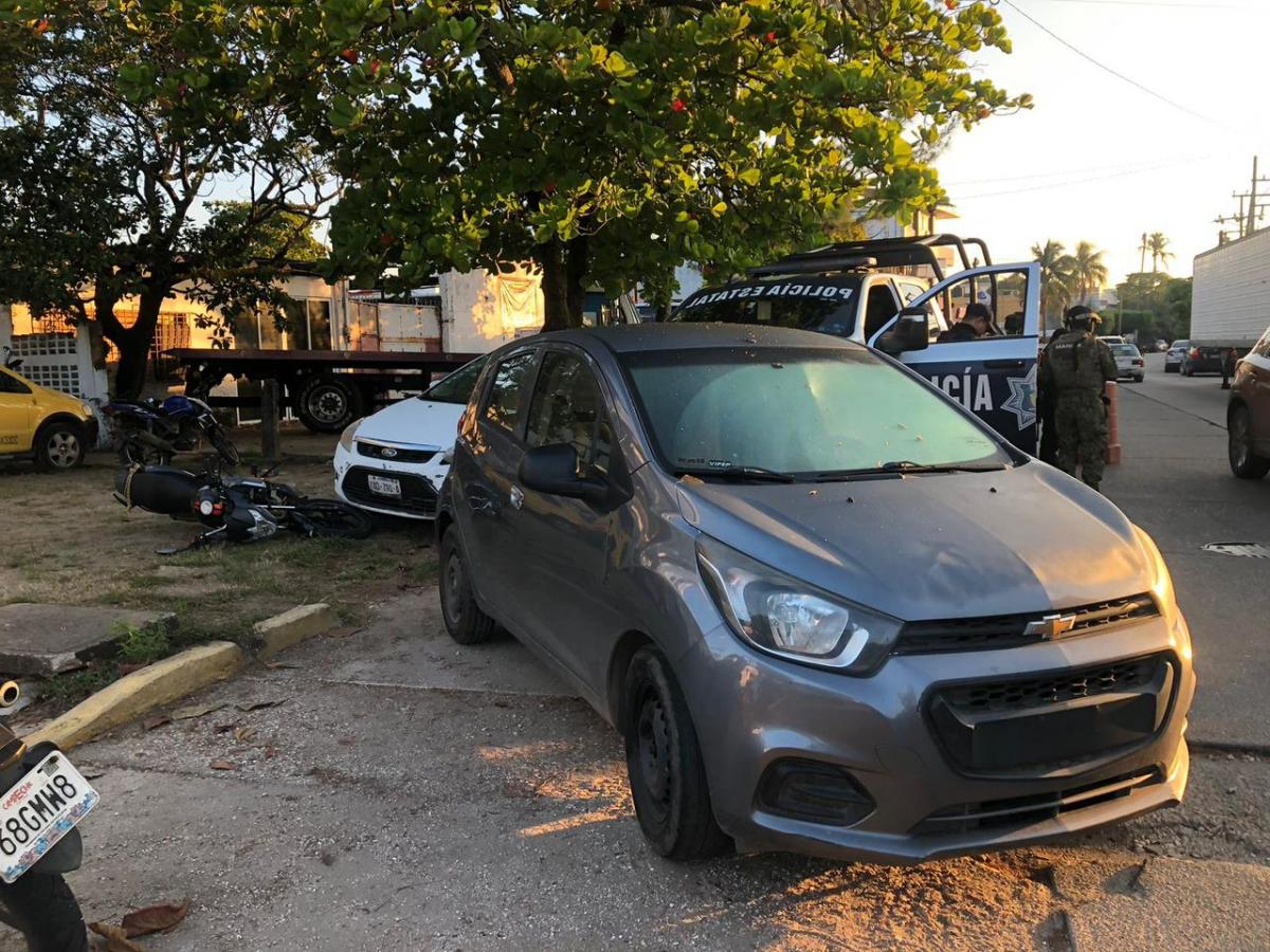 La patrulla primero chocó contra un vehículo Ford Focus blanco (placas YAD-790-A), luego derribó una motocicleta Italika 125-Z sin placas y finalmente terminó estrellándose contra un automóvil Chevrolet Beat gris, con placas YNN-934-B.