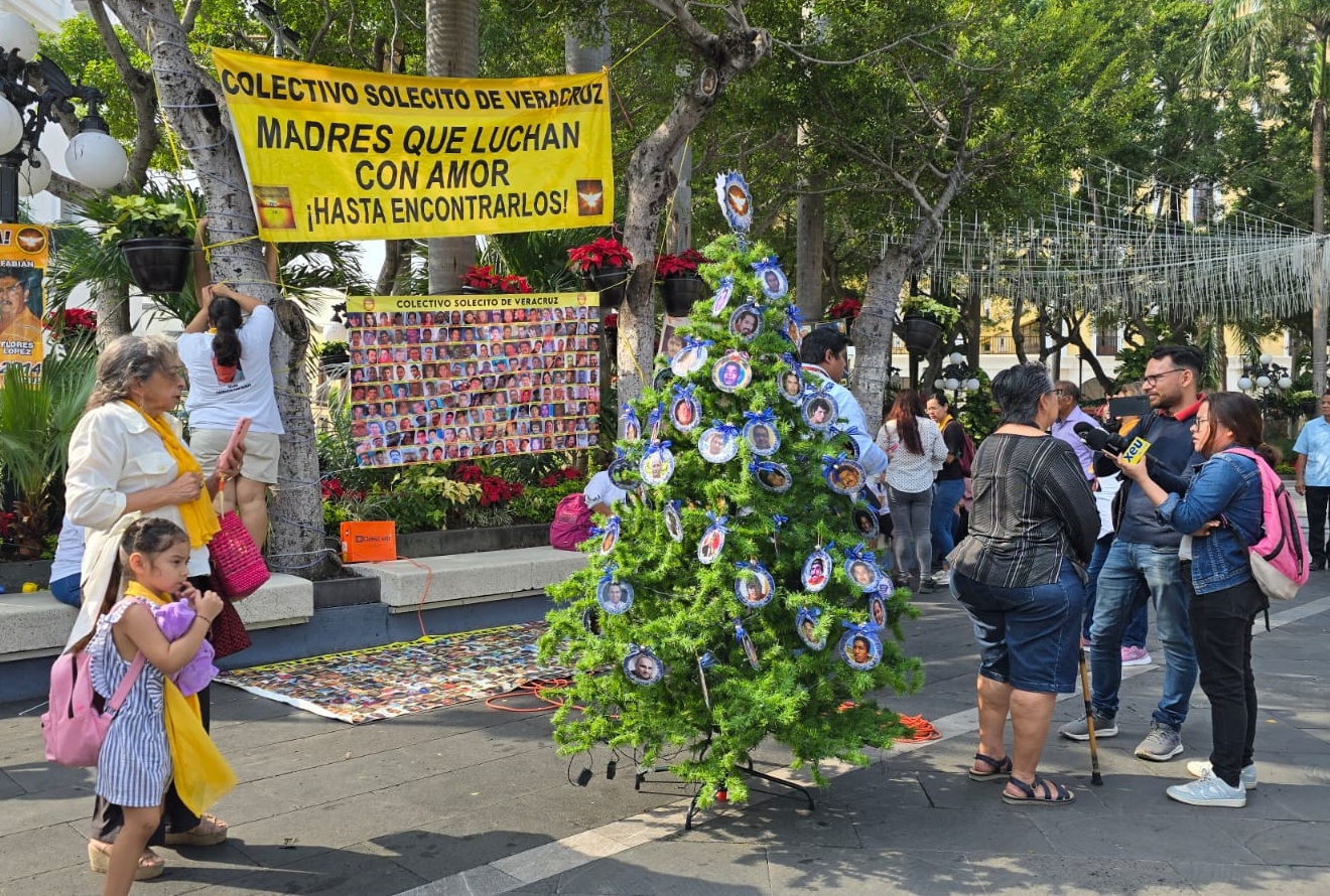 Veracruz, Ver.— Como ha ocurrido año tras año, el Zócalo de la ciudad de Veracruz se convirtió nuevamente en el escenario de una de una de las manifestaciones más tristes en la ciudad. El colectivo Solecito Veracruzano instaló el denominado arbol del dolor, una intervención simbólica que busca visibilizar a los miles de desaparecidos en la entidad durante una temporada donde las ausencias pesan más que nunca.