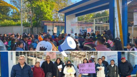 De acuerdo con los docentes del plantel, la plaza docente fue otorgada a una profesora sin que se hiciera pública su disponibilidad ni se respetara el proceso de cambios y movimientos de personal, dejando fuera a maestros con mayor antigüedad y trayectoria dentro del servicio educativo.