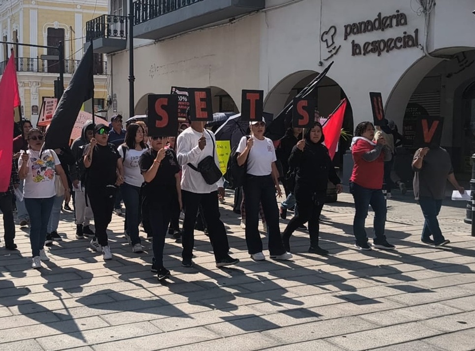 La movilización fue encabezada por integrantes del Sindicato Estatal de Trabajadores al Servicio de la Universidad Veracruzana (SETSUV), quienes iniciaron su protesta a la altura del “Tranvía del Recuerdo”, en la calle Ignacio López Rayón, avanzaron por Independencia y concluyeron en el zócalo de la ciudad.