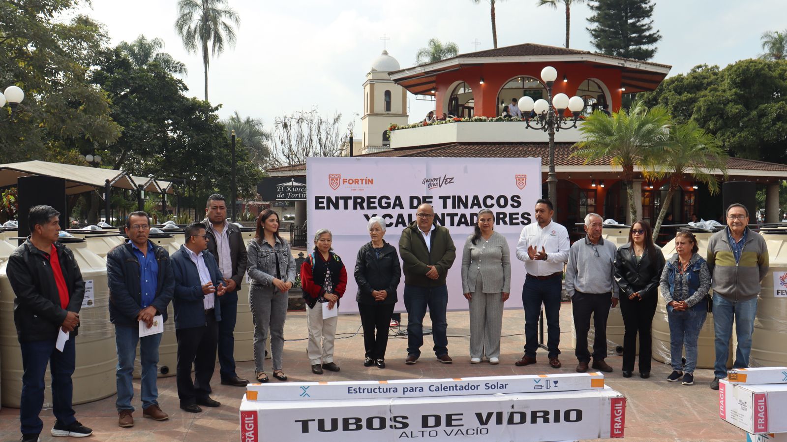 El presidente municipal fortinense, Alfonso Efraín “Piccolo” Marín Delfín, reconoció la gestión efectuada por el DIF Municipal de Fortín, a cargo de la Sra. Rosaura Delfín, en coordinación con la Federación de Migrantes Veracruzanos en América del Norte, al realizar la primera entrega de tinacos y calentadores solares en la explanada del parque Lázaro Cárdenas, beneficiando a decenas de familias de la cabecera municipal.