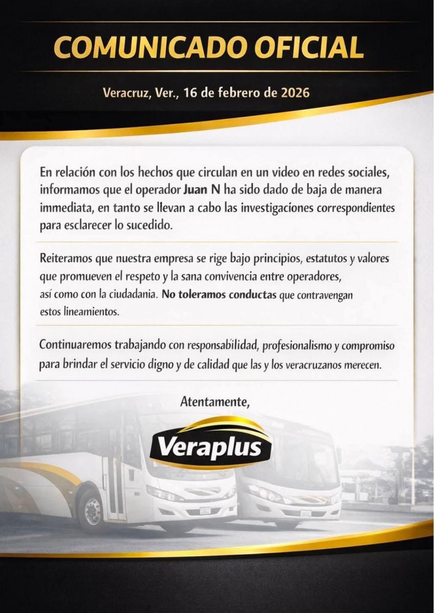 La empresa Veraplus informó mediante un comunicado que el operador involucrado, identificado como Juan “N”, fue despedido.