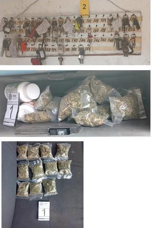 Durante la inspección también fue encontrada hierba seca color verde con características similares a la marihuana, la cual quedó bajo resguardo para los análisis periciales que determinen su composición y posible relación con un delito contra la salud.