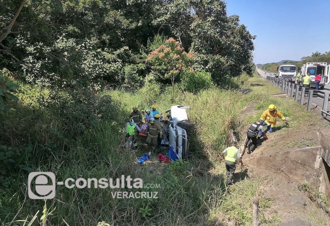 Familia de Chiapas sufre volcadura en el sur de Veracruz; hay 4 heridos