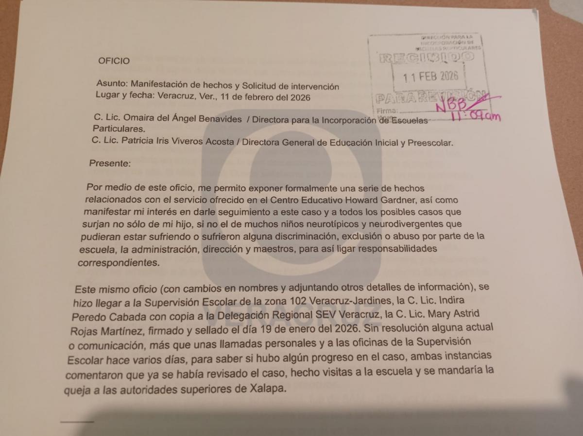 Tras la expulsión —ocurrida el 13 de enero luego de que la madre se negara a firmar un documento para no emitir comentarios negativos en redes sociales— Nahara acudió ante la Secretaría de Educación de Veracruz (SEV) y anunció que en próximos días presentará una queja formal ante la Comisión Estatal de Derechos Humanos (CEDH).