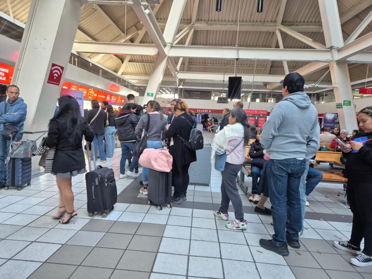 A través de redes sociales se compartieron fotos de personas varadas en la terminal de autobuses TAPO debido a que sus viajes fueron suspendidos por la situación de seguridad ocurrida tras el abatimiento de El Mencho.