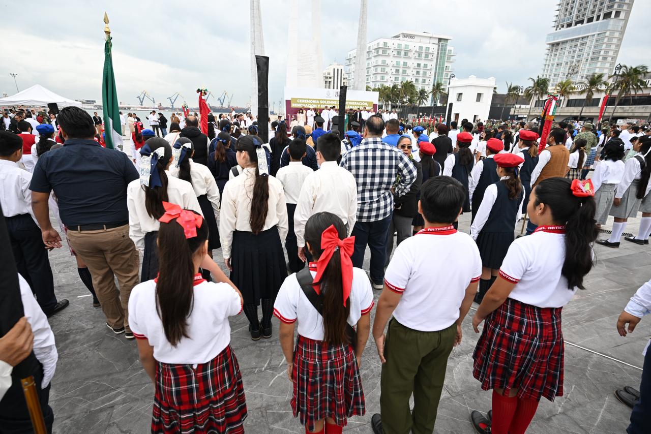 Veracruz, Ver.- Más de 50 niños tuvieron que recibir atención médica durante la ceremonia de incineración y renovación del lábaro patrio realizada en la Plaza Heroísmo Veracruzano, en el puerto de Veracruz, como parte de las actividades conmemorativas del Día de la Bandera.