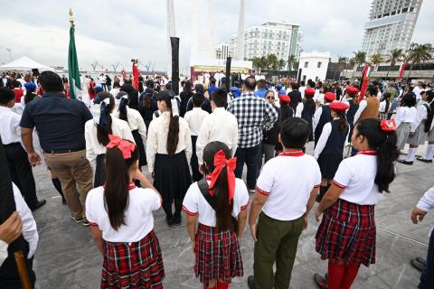 El evento fue organizado por autoridades municipales y estatales y contó con la participación de escuelas y fuerzas armadas.