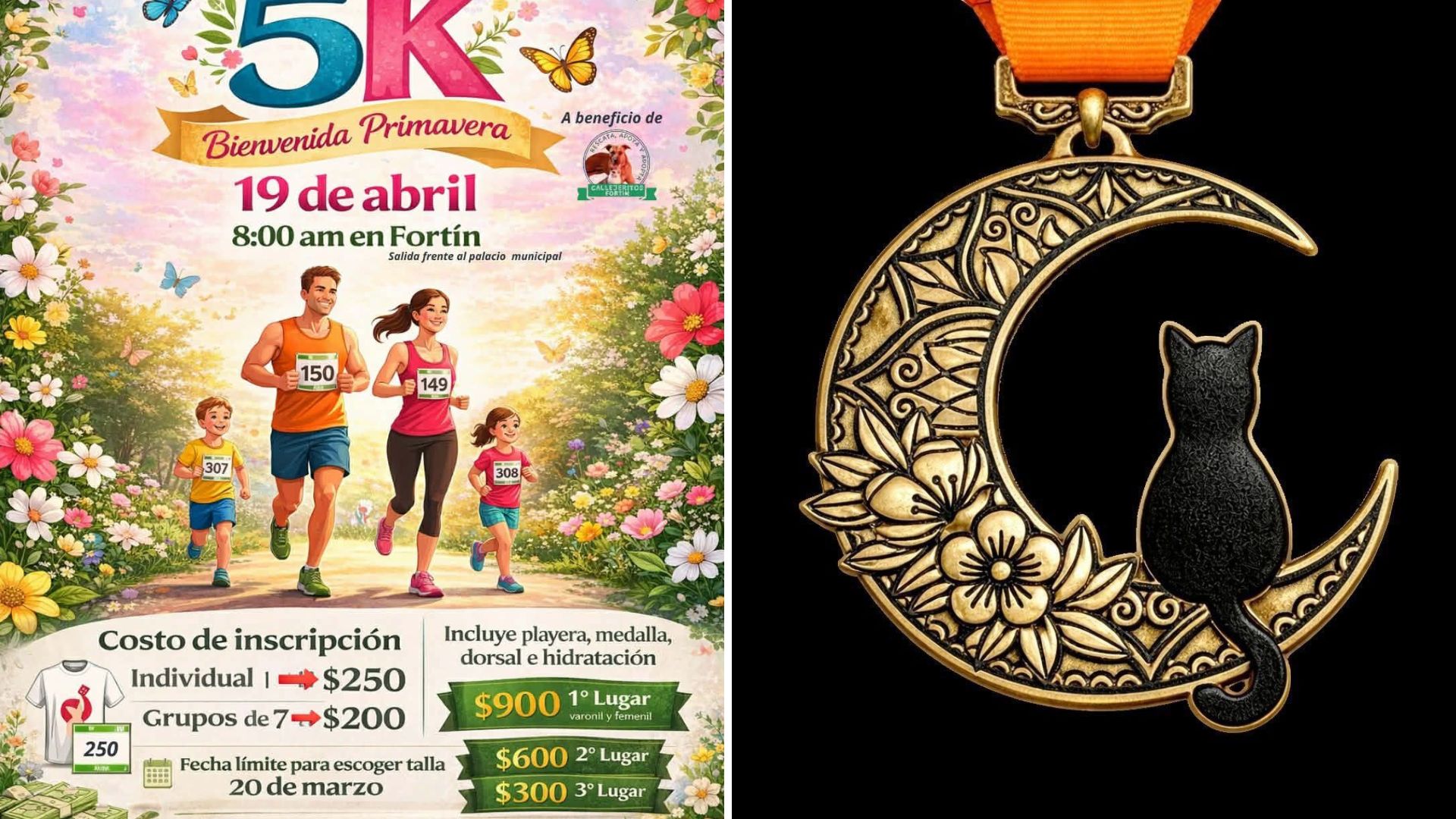 Las inscripciones tienen un costo de 250 pesos individual y 200 pesos por persona en grupos de siete. El kit incluye playera conmemorativa, medalla y número, y la fecha límite para elegir talla es el 20 de marzo.