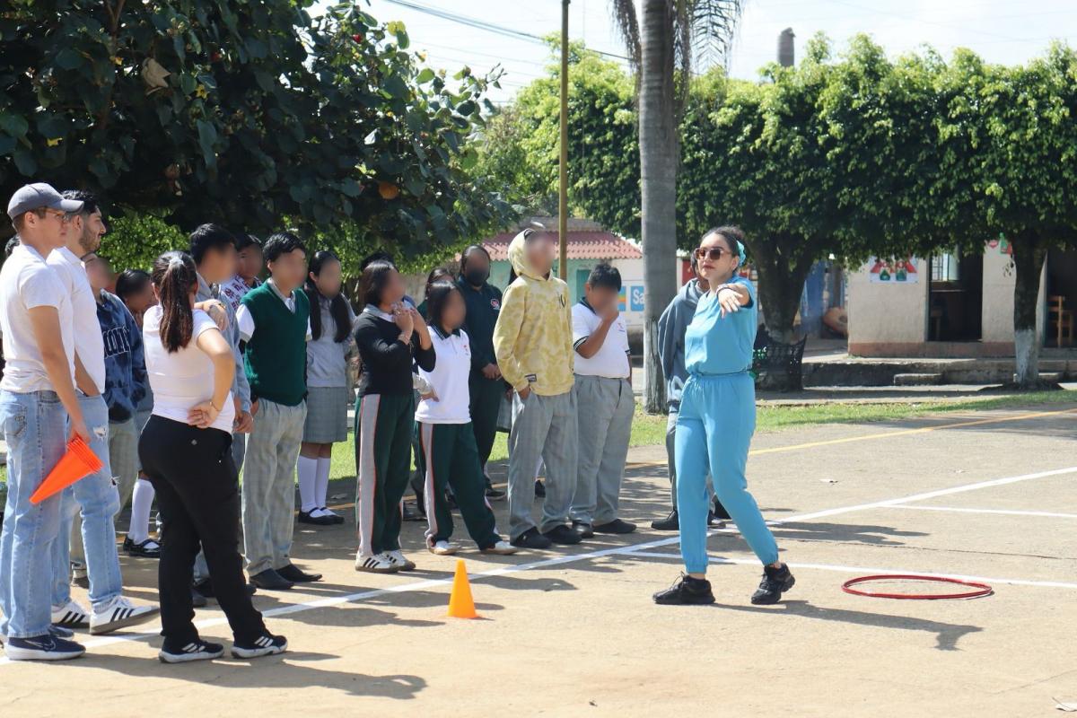 La jornada concluyó con actividades de activación física, dirigidas por Salma Karen Cruz Hernández, encargada de fisioterapia en la Unidad Médica Municipal, quien coordinó ejercicios de destreza y trabajo en equipo con los estudiantes.
