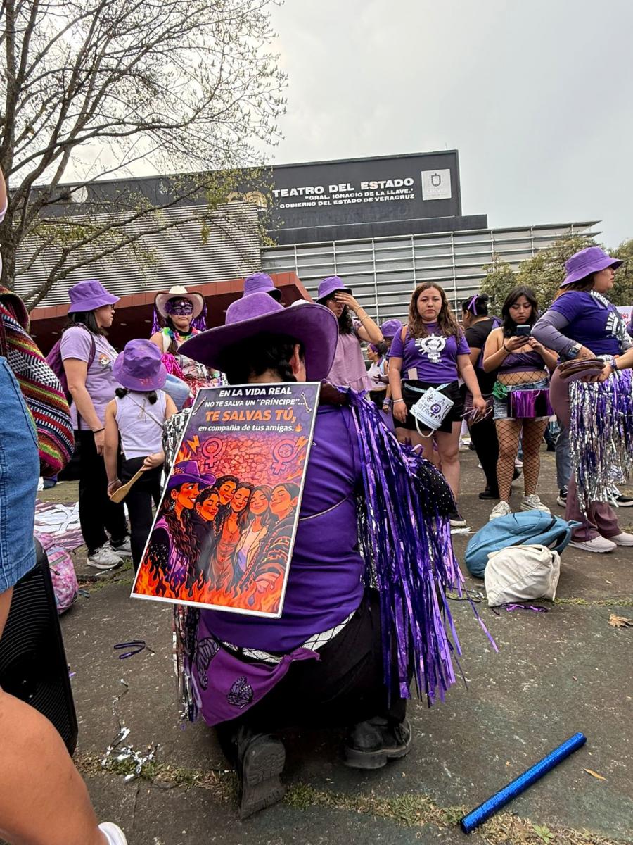 La movilización reunió a alrededor de 500 mujeres o más, quienes permanecieron durante varios minutos en la plaza coreando consignas y levantando sus pancartas frente al edificio gubernamental, en una jornada marcada tanto por la protesta como por la exigencia de seguridad, justicia y el fin de la violencia contra las mujeres en Veracruz.