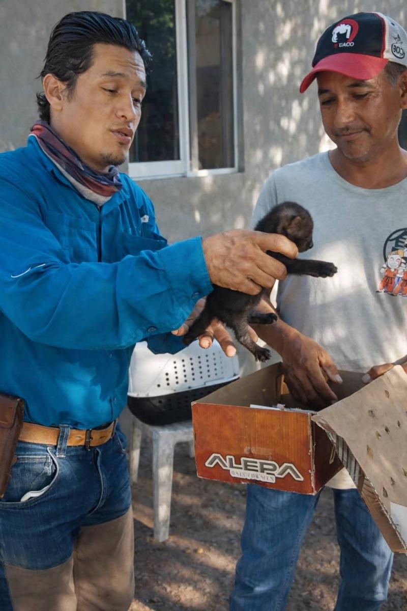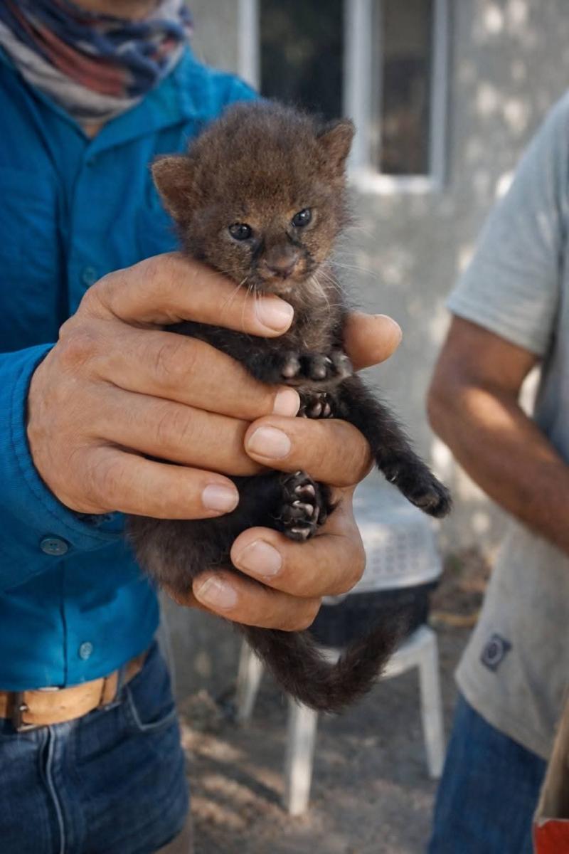 El ambientalista explicó que, tras recibir el reporte de que se trataba de un bebé jaguarundi, se trasladó 60 kilómetros en motocicleta para llegar al poblado donde fue encontrado el animal.