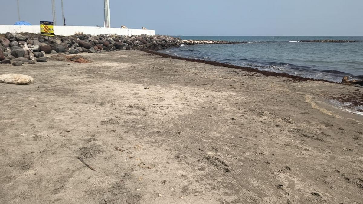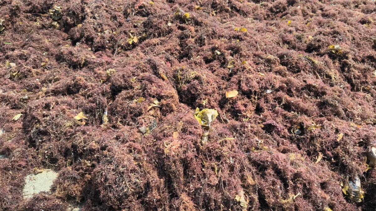 La presencia de esta macroalga pudo observarse durante la mañana de este miércoles 11 de marzo, cuando la arena en una franja del litoral se cubrió con montones de sargazo en descomposición.