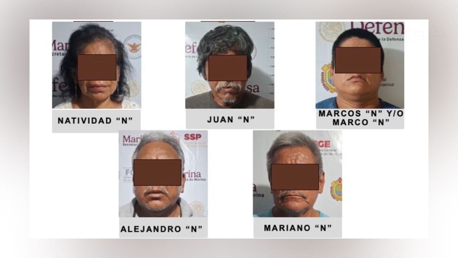 La dependencia informó que, a través de la Fiscalía Regional Tuxpan, se logró la detención y judicialización de Natividad “N”, Juan “N”, Marcos “N” y/o Marco “N”, Alejandro “N” y Mariano “N”, señalados como presuntos responsables del delito de homicidio doloso calificado.