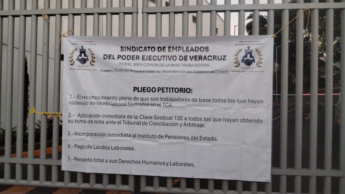Los manifestantes advirtieron que mantendrán el bloqueo de las oficinas centrales en Xalapa de manera indefinida, hasta que se instale una mesa de negociación resolutiva que garantice el cumplimiento de la ley y el respeto a la antigüedad de los 38 empleados.