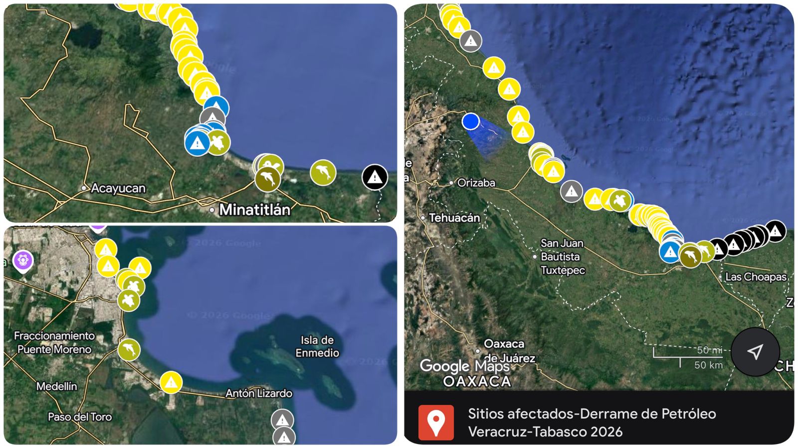 Mapa interactivo revela 51 sitios dañados por derrame en Veracruz