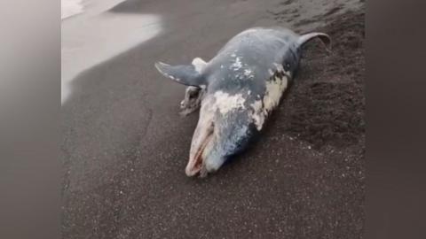 En medio del derrame, hallan delfín mutilado en playa de Alvarado