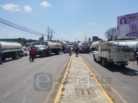 Poza Rica, Ver.— La ciudad de Poza Rica quedó prácticamente incomunicada este 27 de marzo, luego de que distribuidores de agua en pipas bloquearon de forma simultánea los principales accesos, lo que generó caos vehicular.