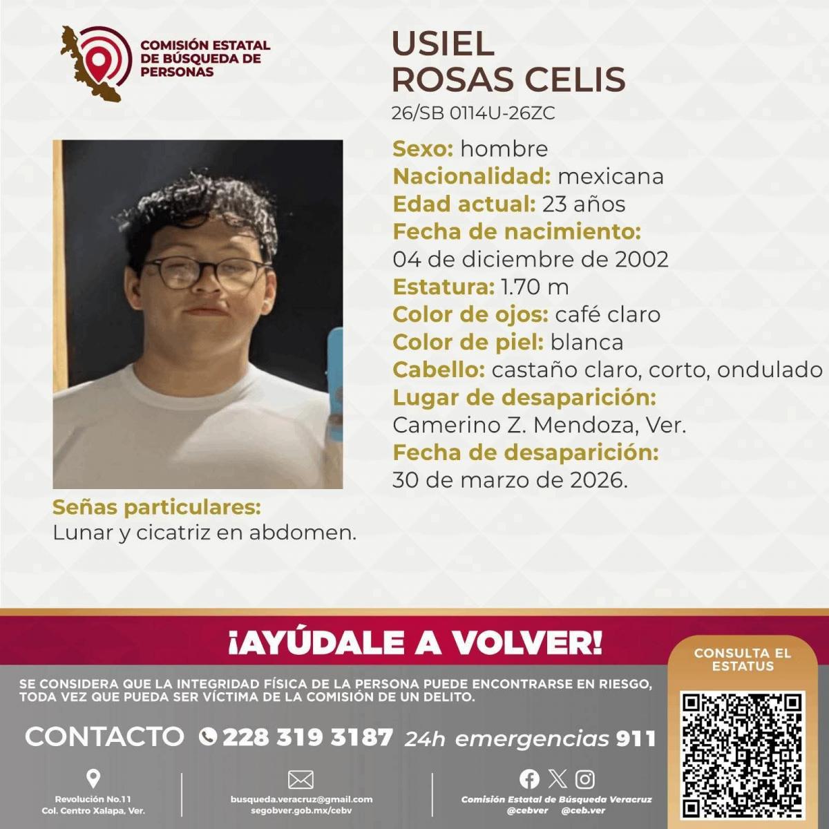 Las autoridades estatales difundieron los canales oficiales para aportar información que contribuya a su localización, incluyendo el número 228 319 3187 y el 911.