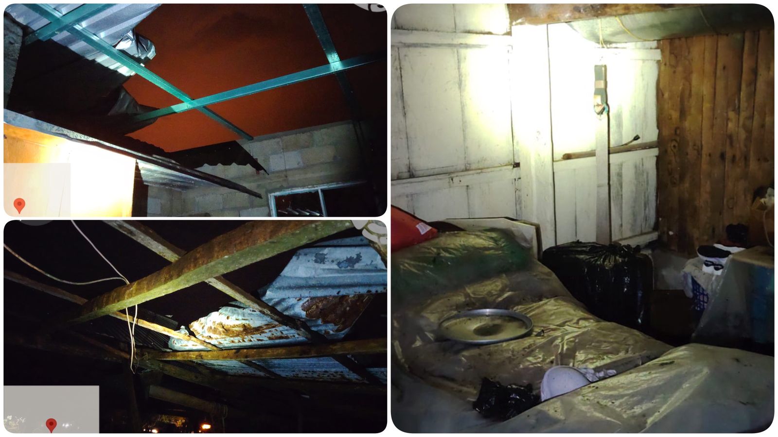 En tres casos, las familias no pudieron permanecer en sus casas debido a que el viento arrancó parte de los techos, dejando expuesta gran parte de las viviendas.