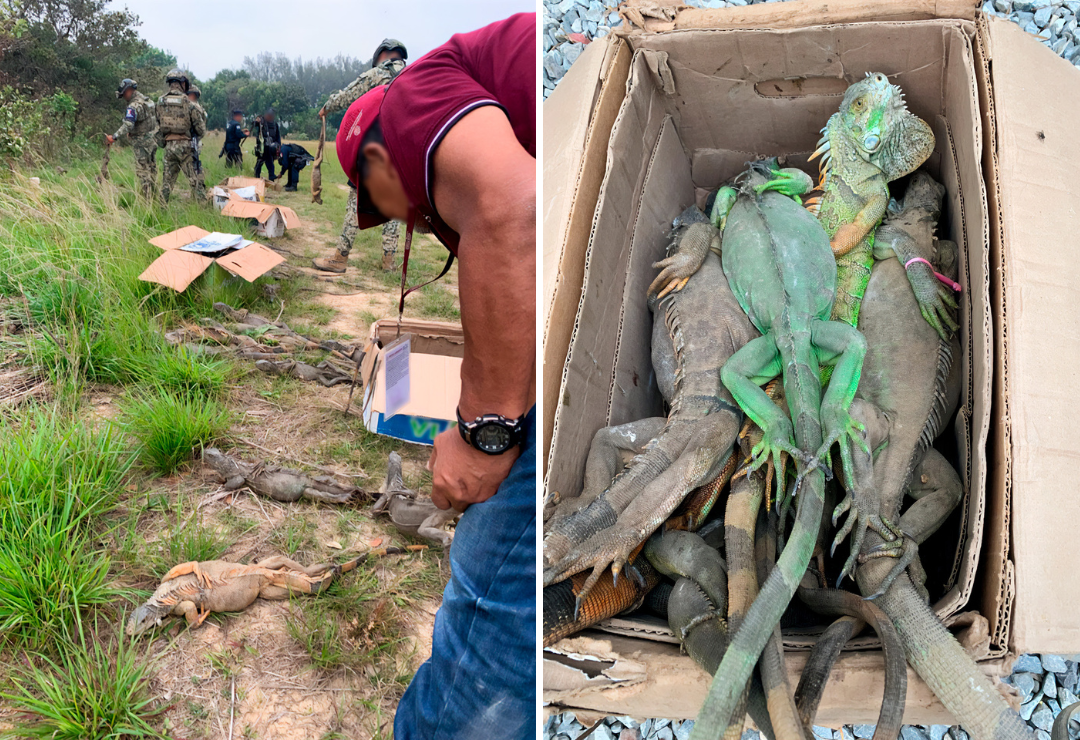 Profepa detalló que se trató de ejemplares de la especie iguana verde. Presuntamente, por las características y comportamiento, los ejemplares provenían directamente de su entorno natural —por lo que se piensa que fueron capturados de forma ilegal para tráfico de especies—.