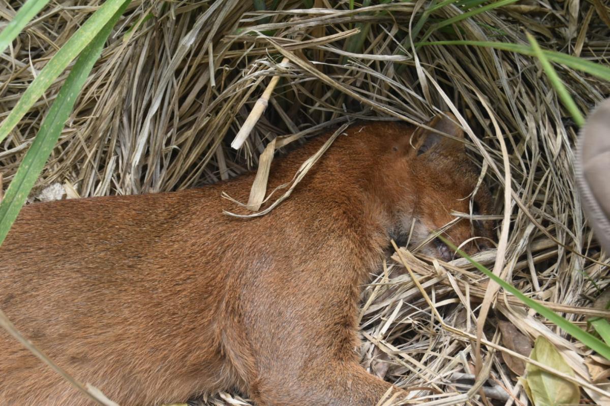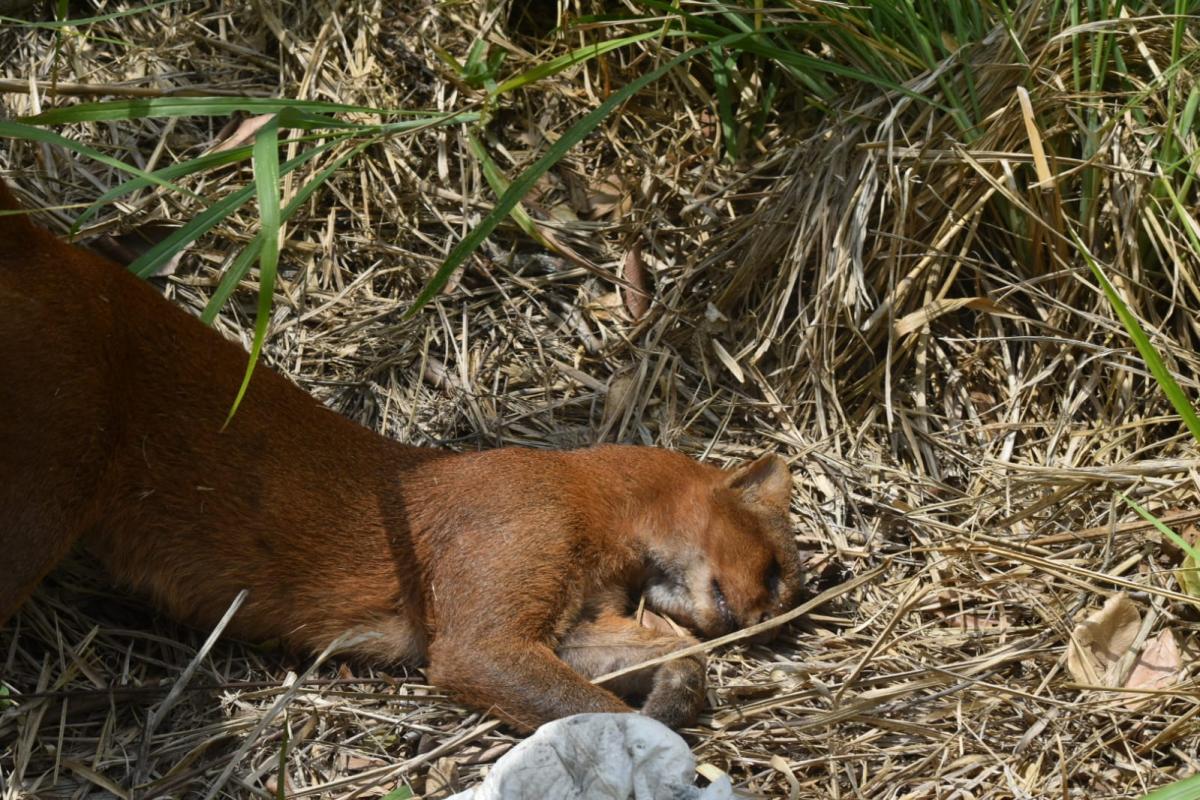 El hallazgo fue realizado por un motociclista que circulaba por la zona y se percató del cuerpo del felino silvestre a un costado de la carretera que conecta El Tejar con Rancho del Padre.
